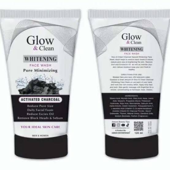 Glow and Clean Charcoal Facewash, perfect for all skin types. This facewash is packed with skin care benefits such as whitening, pore control, soothing, sun protection, and firming/lifting. It effectively targets common skin concerns such as acne & blemishes, dark spots & hyperpigmentation, pores, redness, and sun damage.